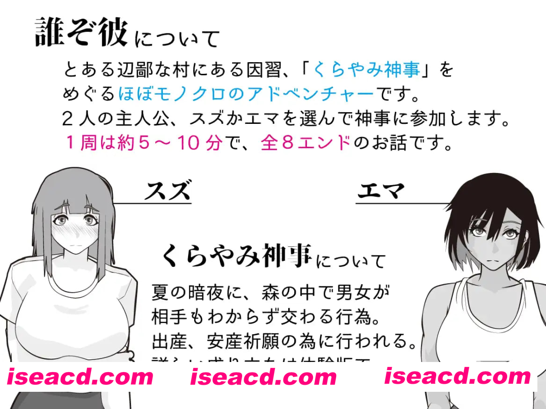 游戏简介 他是谁呢 这是一个以因习村为舞台的故事。 正如上面的注意事项中所写的那样, 这并非是一个令人愉快的故事。 请您留意。 阅读全文 资源下载下载价格VIP专享仅限VIP下载升级VIP立即购买 常见问题 解压密码错误?点击查看》PS:如果提示密码错误,推荐使用Bandizip解压或修改后缀为zip 有些人是因为解压密码复制错误,请手动扩选解压密码,不要直接点复制。 0 0