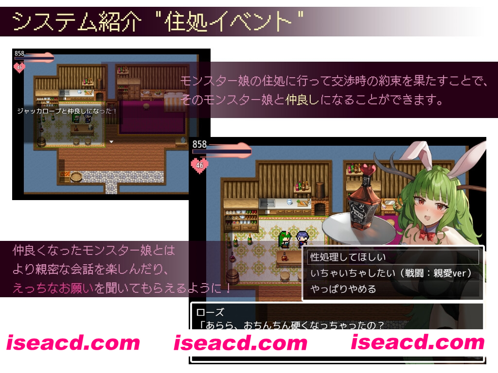 ◆游戏简介 ◆这是一款采用回合制战斗的BF(战斗援助)RPG游戏。 每个怪兽女孩都有不同的绝招和诱惑, 玩家需要通过性技巧和交涉来完成返回人类国家的旅程。 除了特殊事件和小游戏之外,H场景基本上分为以下两种模式: ◆传统的H场景,通过插图和文字展示 包括文本自动模式、文本跳过和消息窗口暂时隐藏等功能。 这种模式基本上适用于旅途中发生的H场景和失败时的H场景。 ◆玩家可以在喜欢的时机射精的自慰支持类型H场景 在使用键盘的1/2/3键控制怪兽女孩的兴奋度(对白的刺激程度), 在想要的时机按下C键就可以进入射精模式。 与剩余文本量或主人公射精时机无关, 玩家可以在自己选择的时机完成射精。 这种模式适用于在怪兽女孩的住处进行的性服务事件。 ◆Ver.2追加阶段 协商×怪物 通过版本升级,安装了本篇通关后开放的新区域“塔尔塔罗斯篇”。 追加了8个新角色和新HCG32张(不包括差分、立绘等)。 ◆情景 ◆以胸部为中心的玩法,例如胸交,同时也包括打飞机、口交、足交、骑乘位等…… 偏向女性为主的奉仕性玩法。 ◆更新日志 Ver.3.1.2 修复了在”乳首触摸游戏”射精演出中按下C键会导致无法继续进行的故障 其他 资源下载下载价格VIP专享仅限VIP下载升级VIP立即购买 常见问题 解压密码错误?点击查看》PS:如果提示密码错误,推荐使用Bandizip解压或修改后缀为zip 有些人是因为解压密码复制错误,请手动扩选解压密码,不要直接点复制。