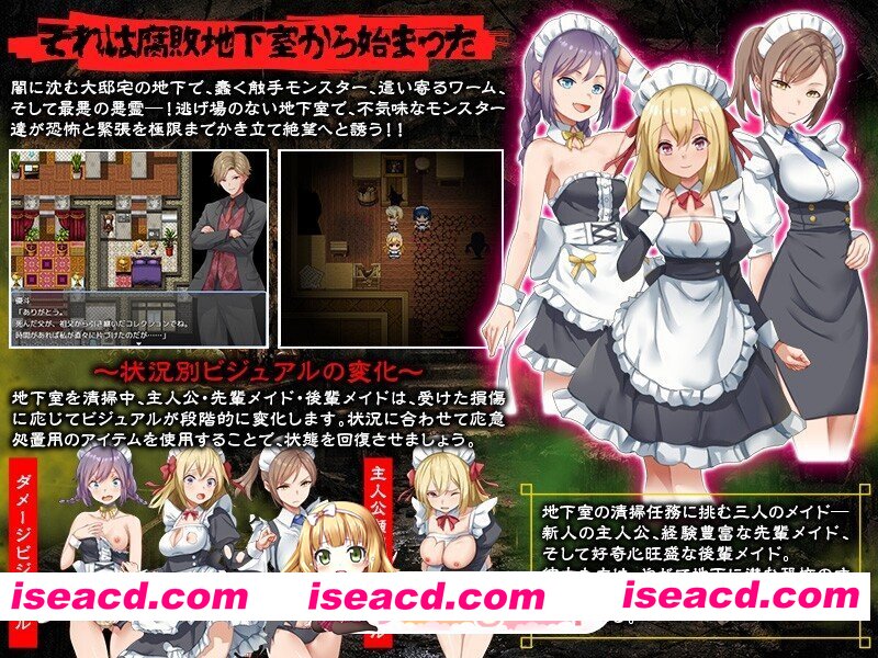 ■游戏概述■ 在古老的大豪宅里工作的新手女仆,偶然发现了谁也不知道的 “另一个地下室” 的入口。 从那里开始飘来的,是某种腐败物的气味。 遵照主人的命令,主人公负责打扫那个地下室,然而那里却...