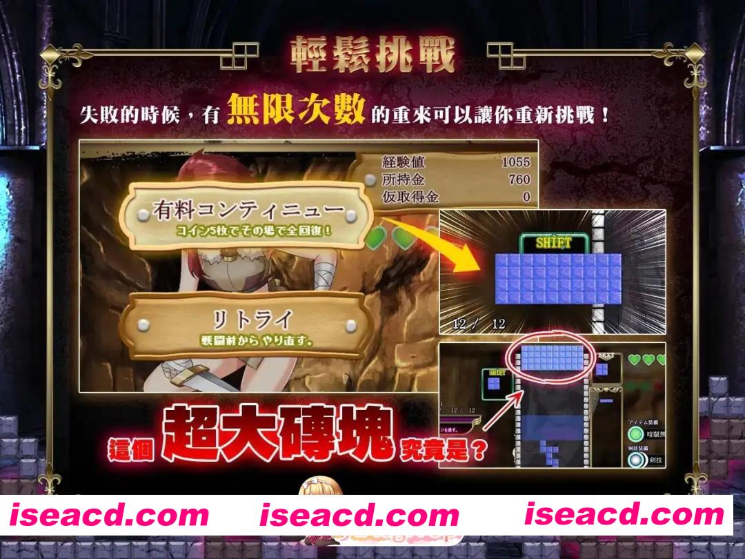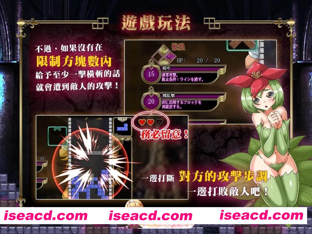 透过俄罗斯方块的游戏方式,挥出横斩,把敌人打倒。