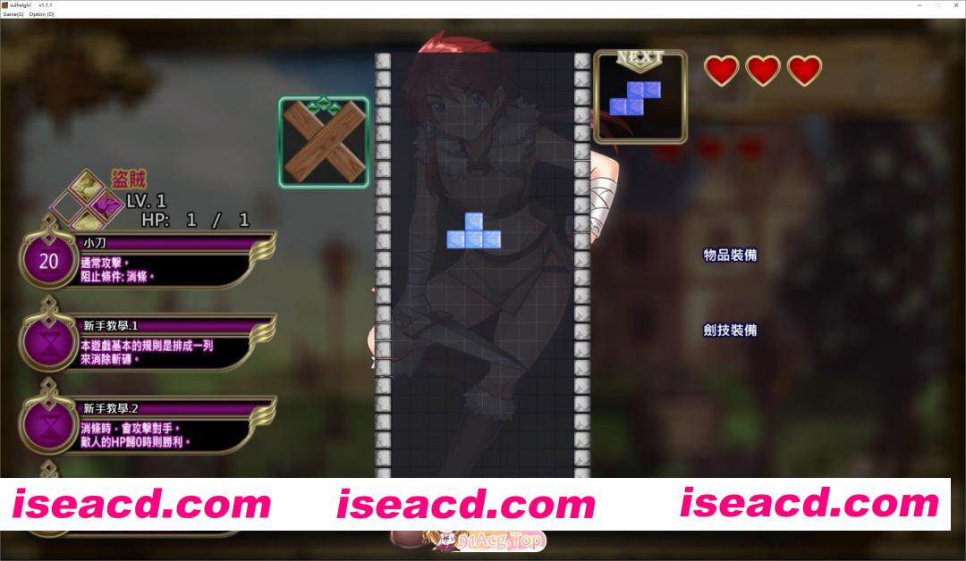 透过俄罗斯方块的游戏方式,挥出横斩,把敌人打倒。